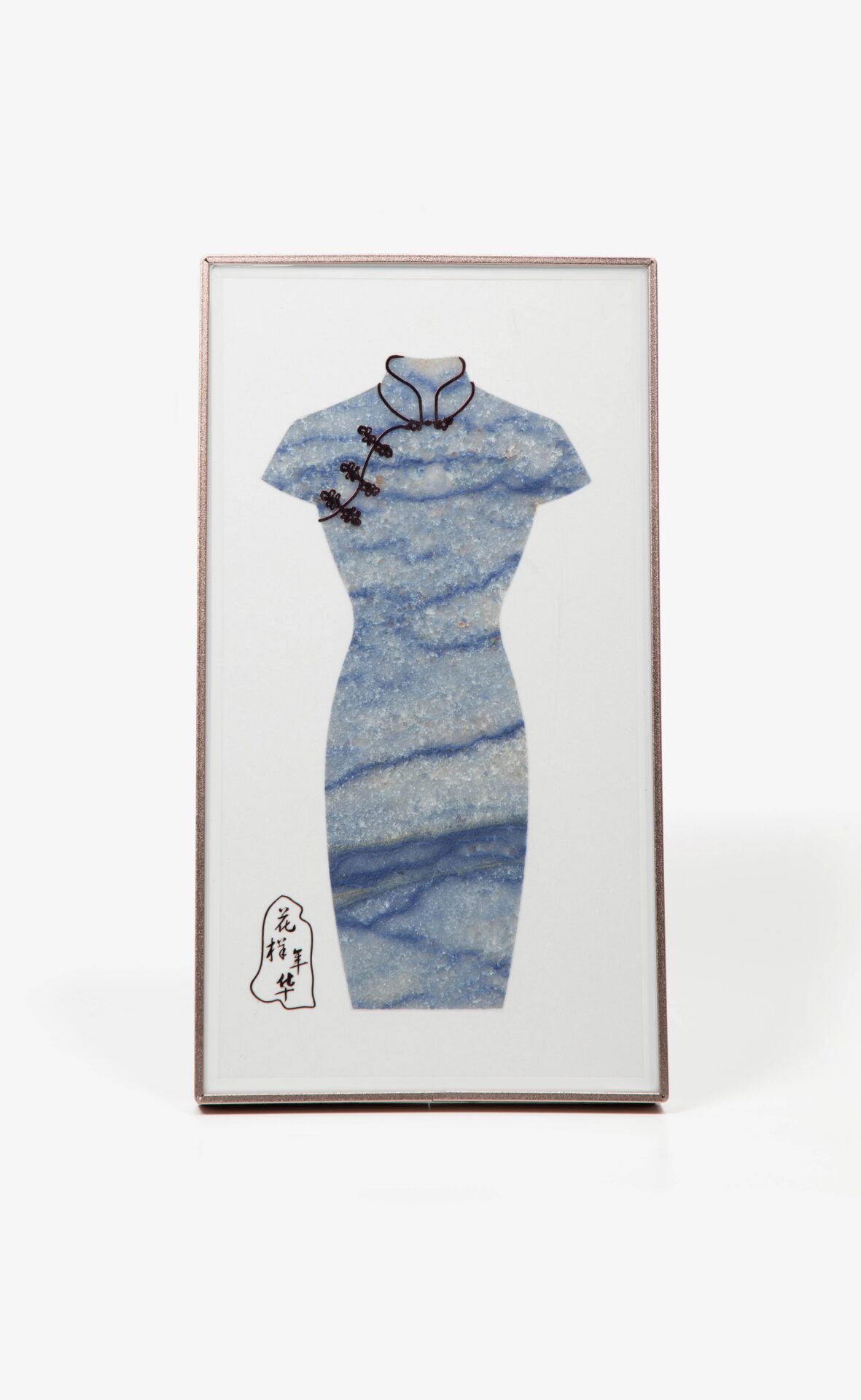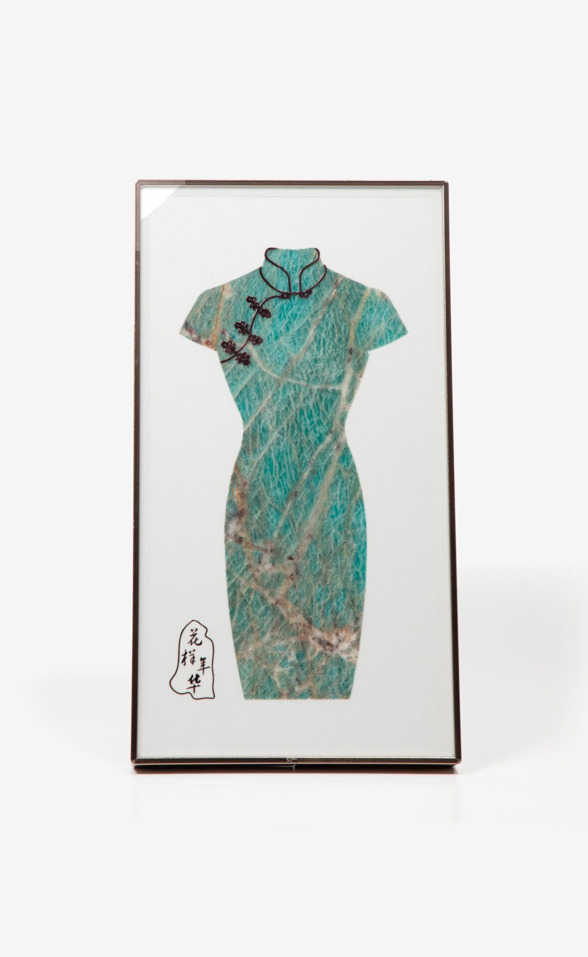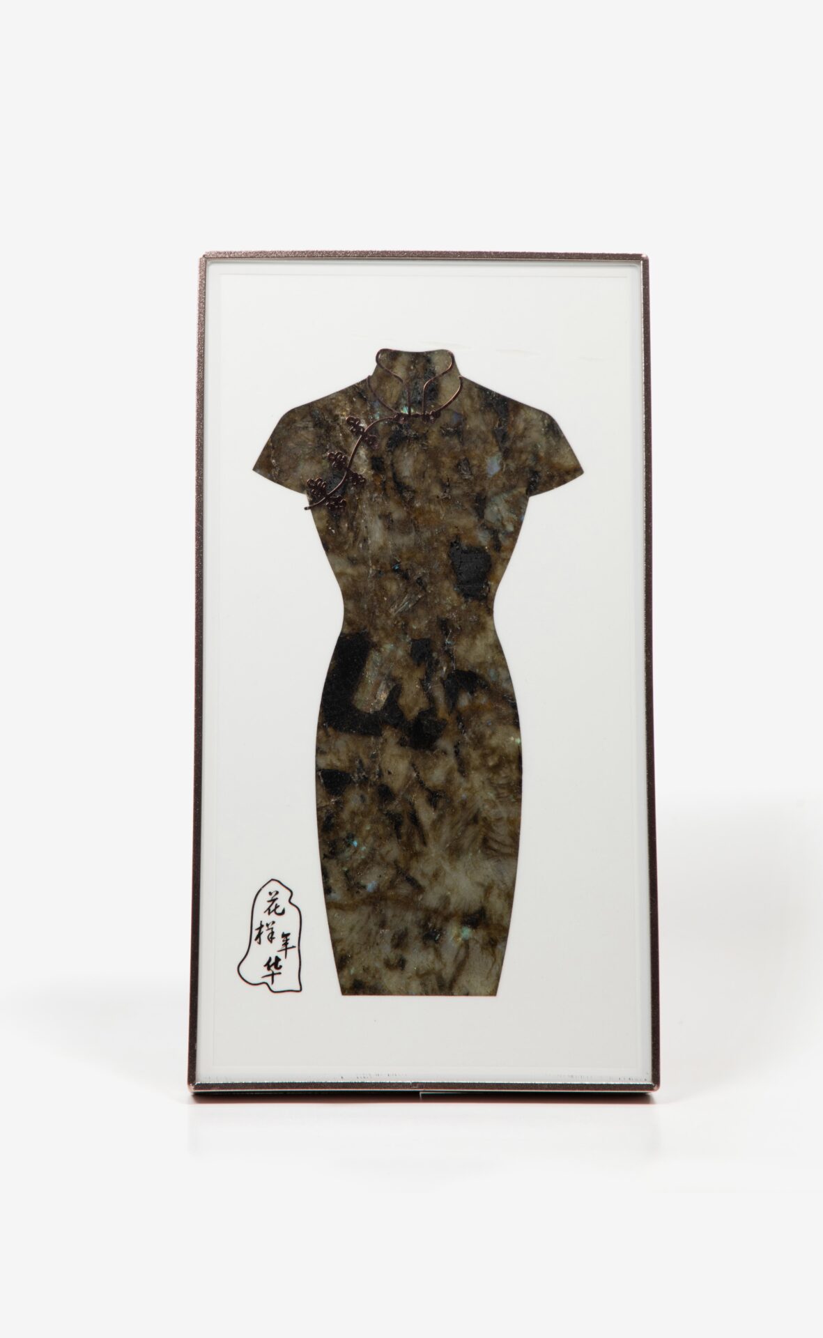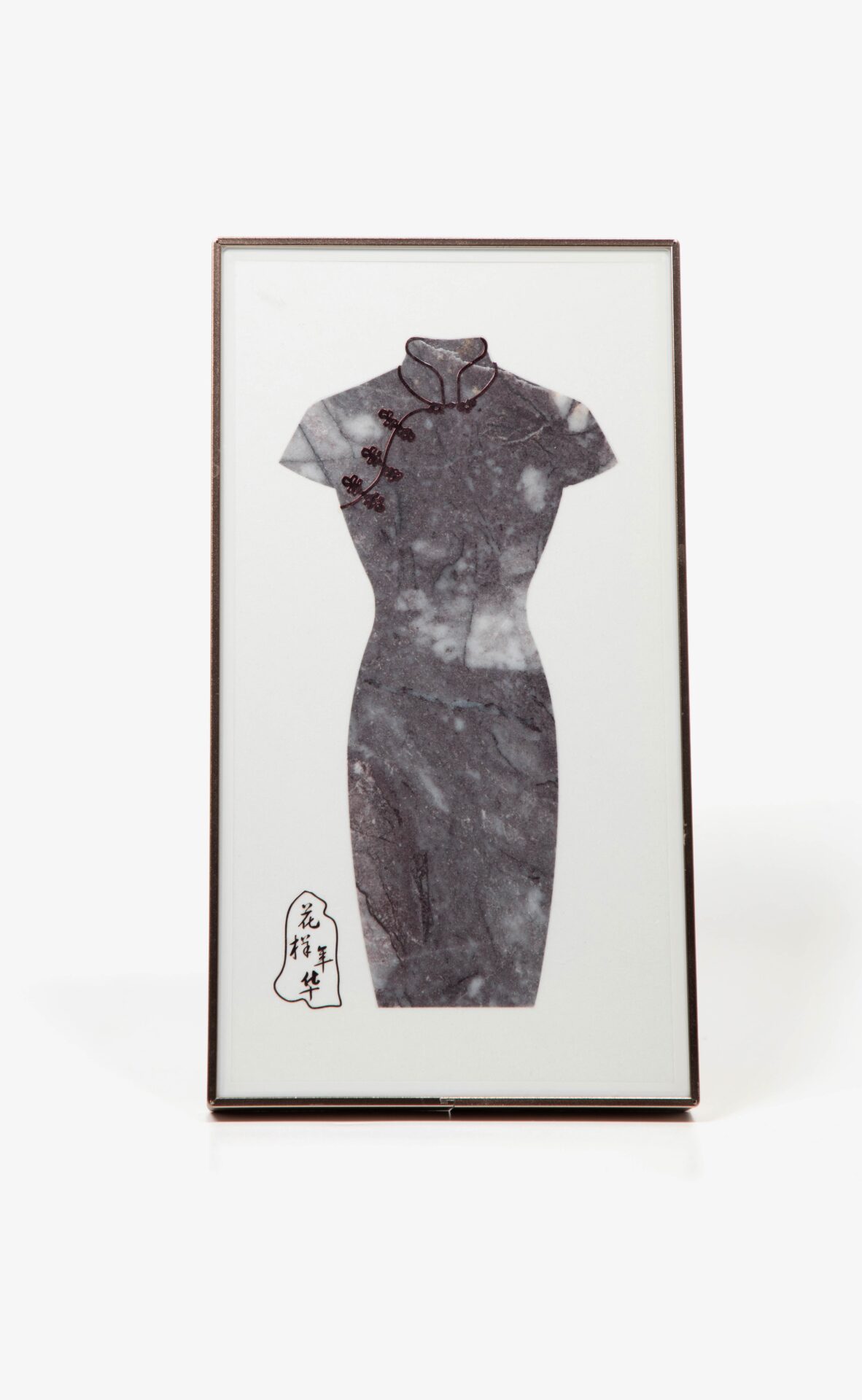 Waterjet-Cut Chinese Cheongsam Dress from Natural Marble Mosaic, Luxury Stone Wall Art with “Blooming Years” Calligraphy