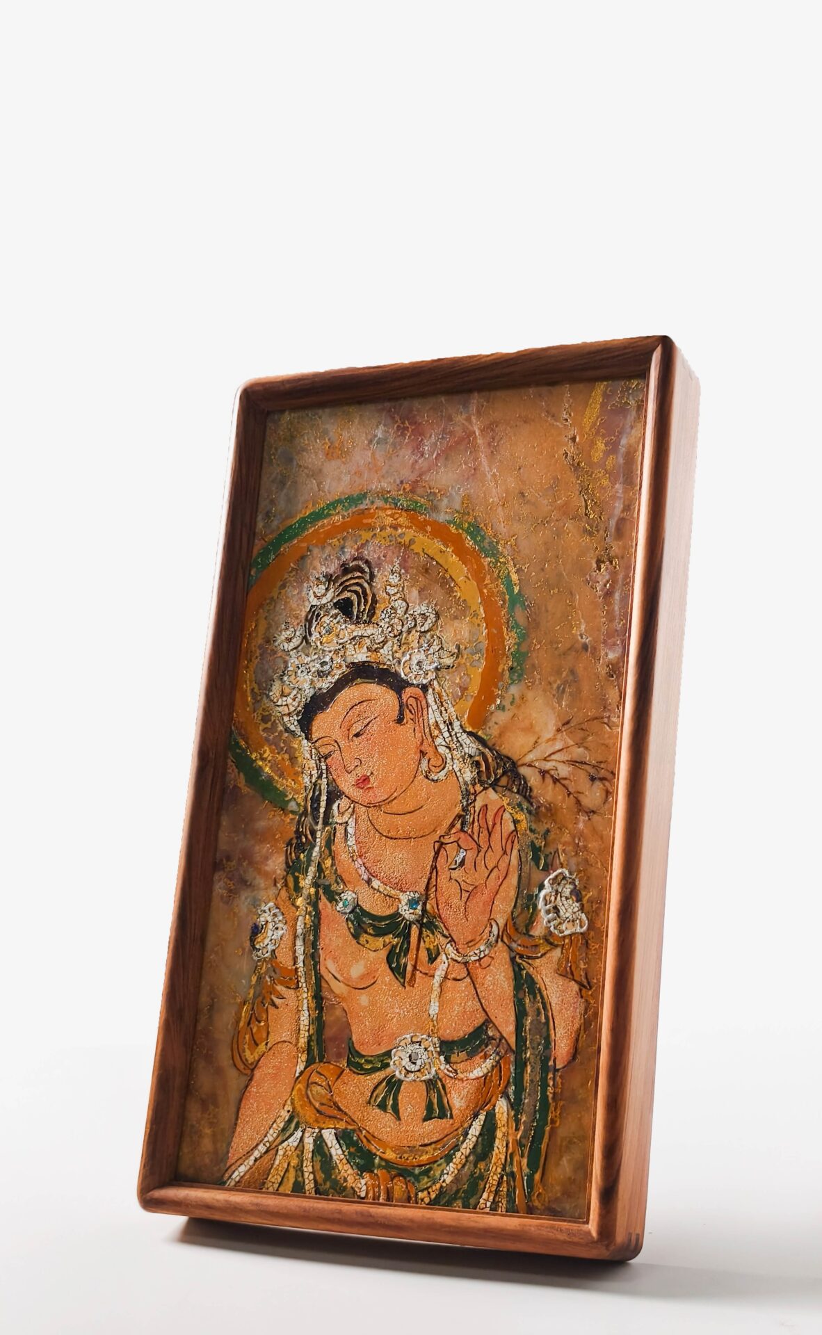 Dunhuang Water Moon Guan Yin ,Natural Lacquer on Marble ,Intangible Cultural Heritage Buddhist Wall Art